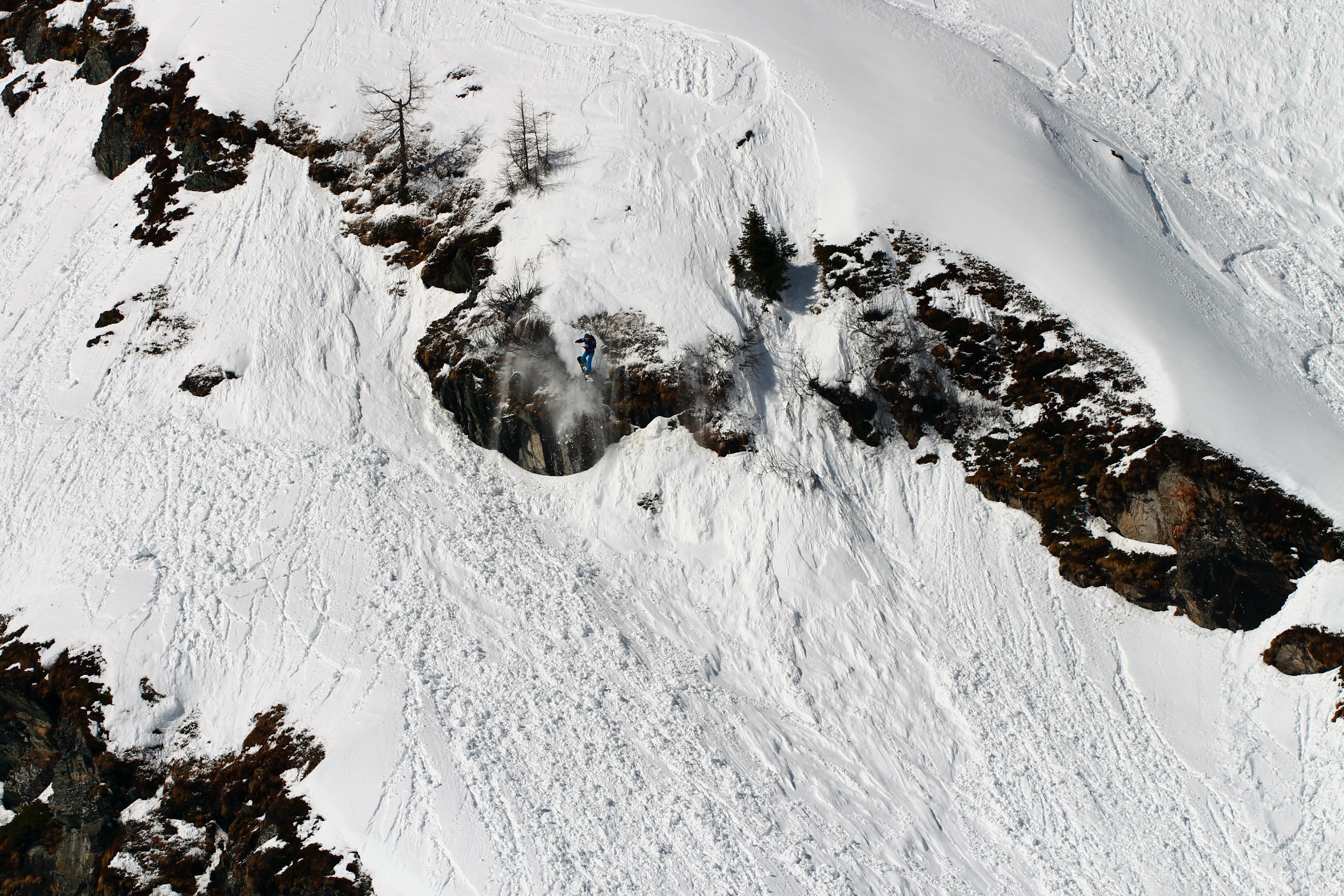 The forecast for saturday showed that the temperature would rise. As the face is orientated south east, it was clear that the snow would be affected by the sun in combination with higher temperatures. I still chose a rather hard line, although it again would have been more intelligent to skip the high drops and go for medium drops and land them safe. Just can’t help myself:)