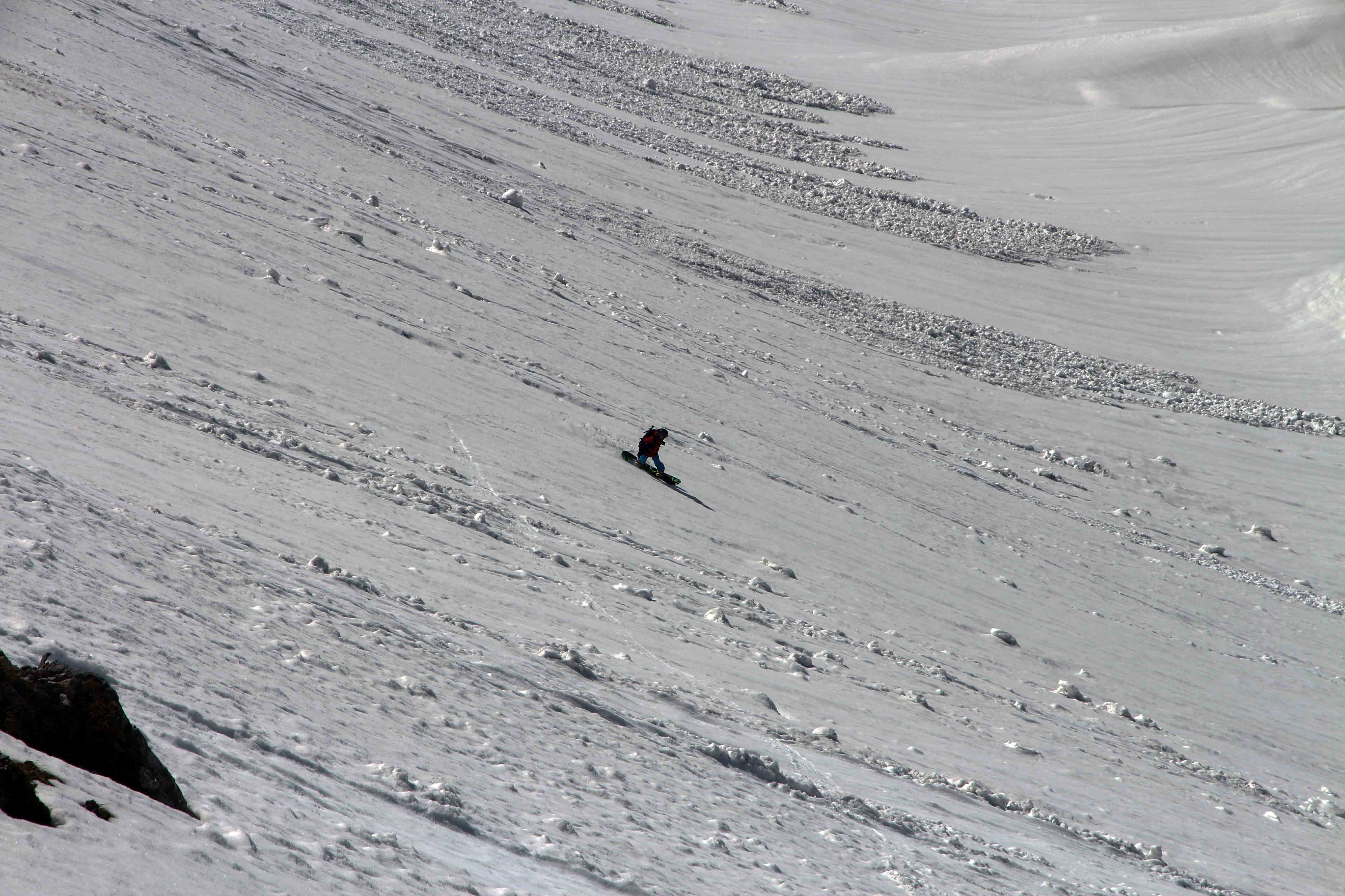 It was clear, that this would be the last adventure this winter, when we looked at the snow more precisely: it already was very wet and the snowpack hardly froze properly overnight and only developed a crust. That already minimized the choices of possible lines.