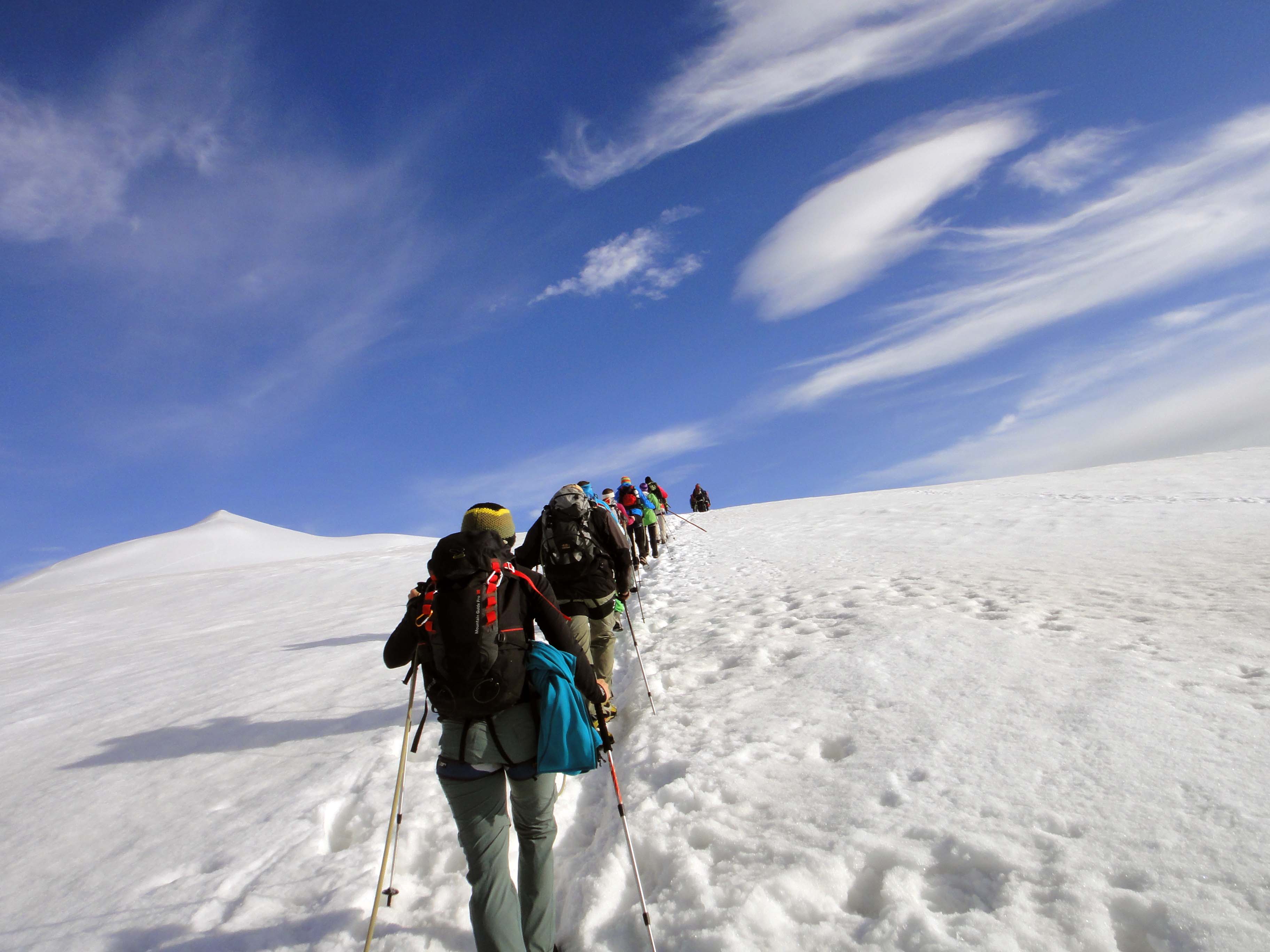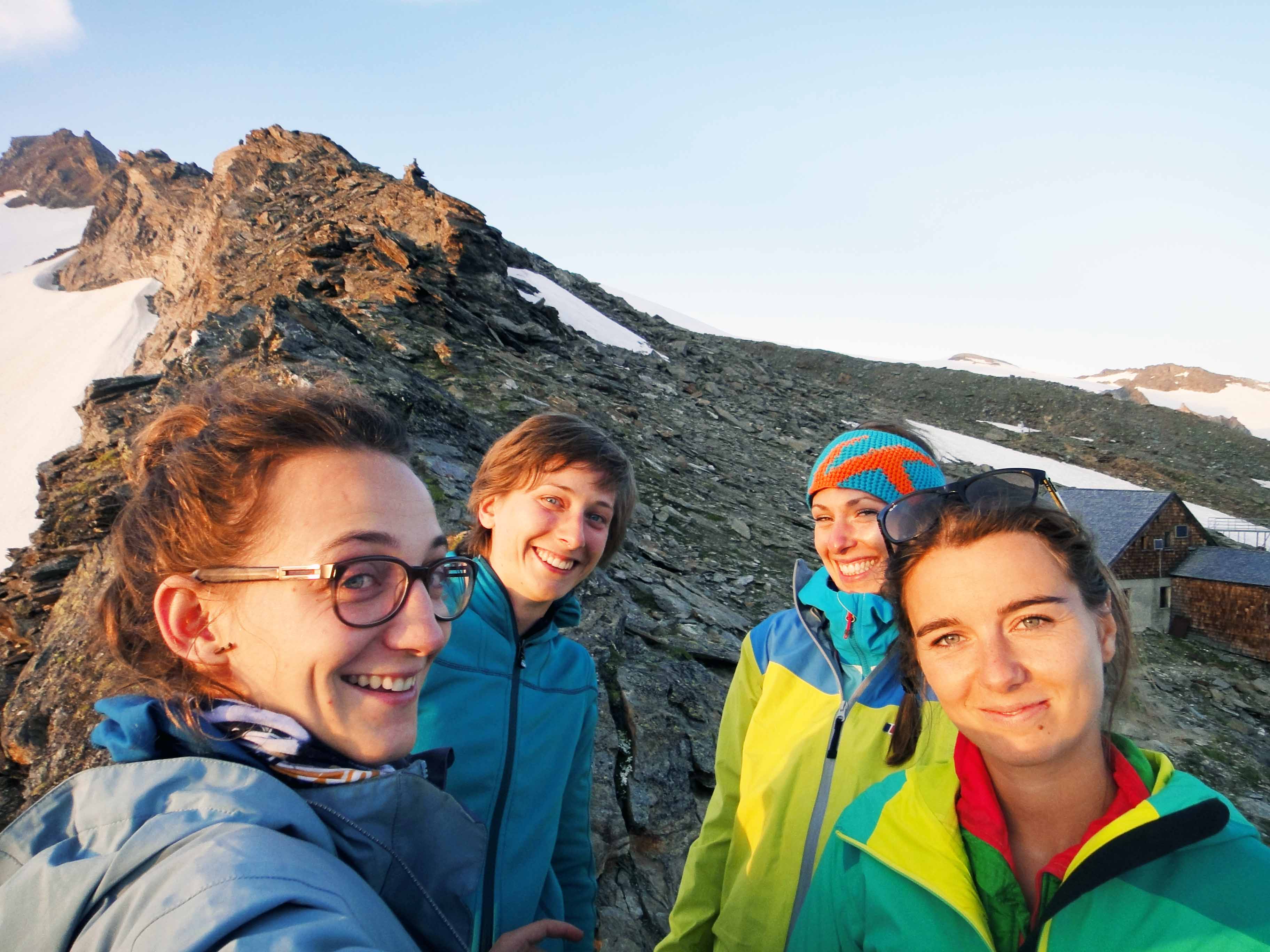 We were a group of people who hiked the upper bit roped up with a mountain guide. The top of Großvenediger is consisting of old snow and only in some places the rocks peer through. We were highly motiviated and carried up our crampons, but there were such good conditions, that we actually didn’t need them.