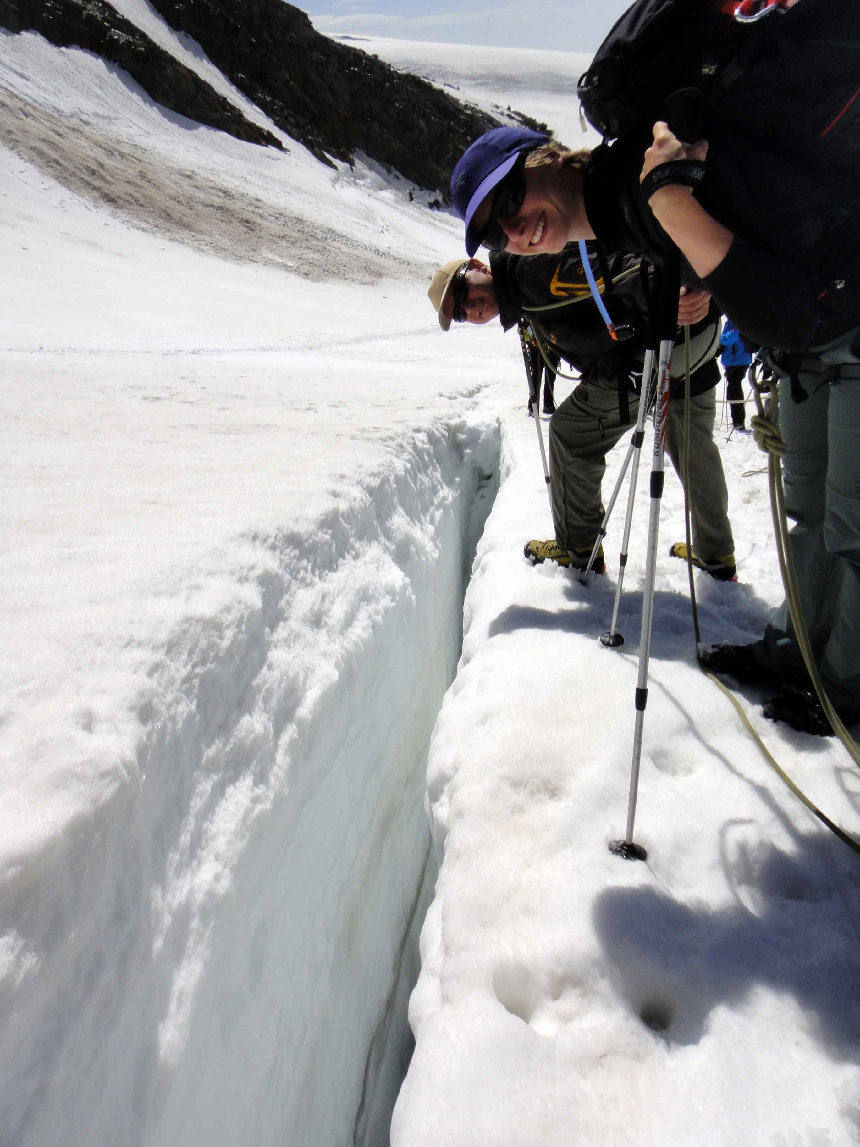 It was really good to step on snow again and rather impressive to see all the open crevasses and peer into the heart of the mountain through the ice.