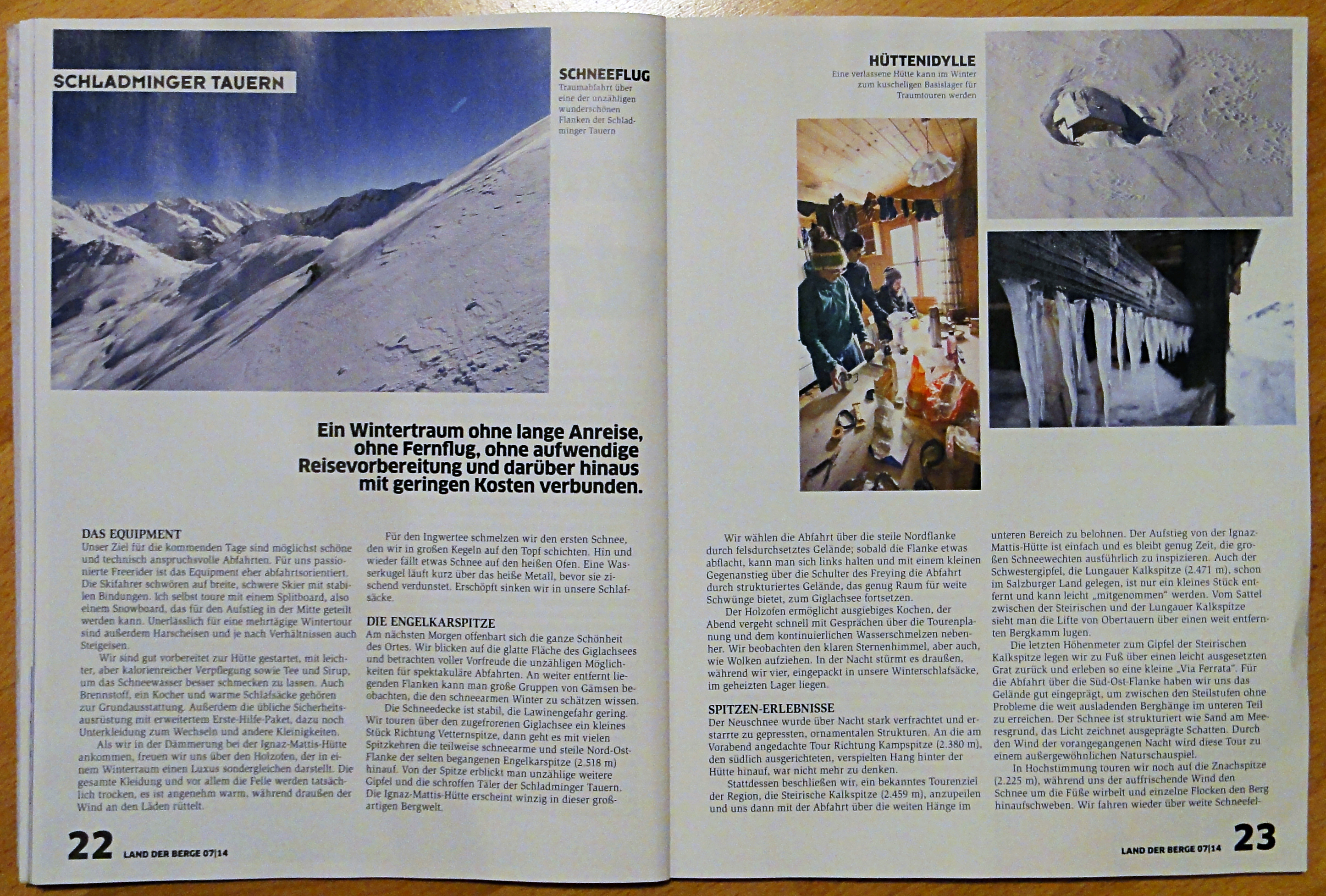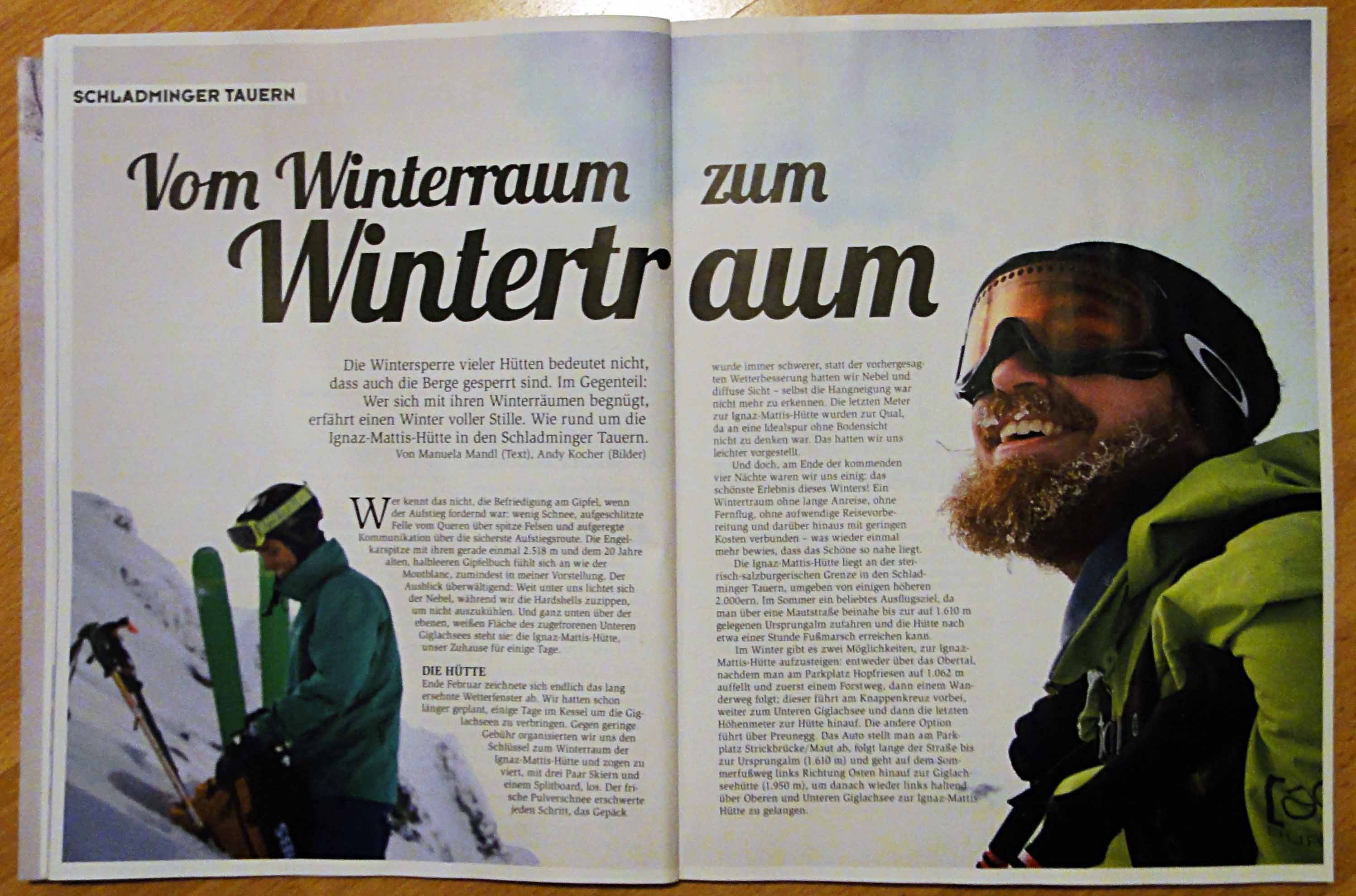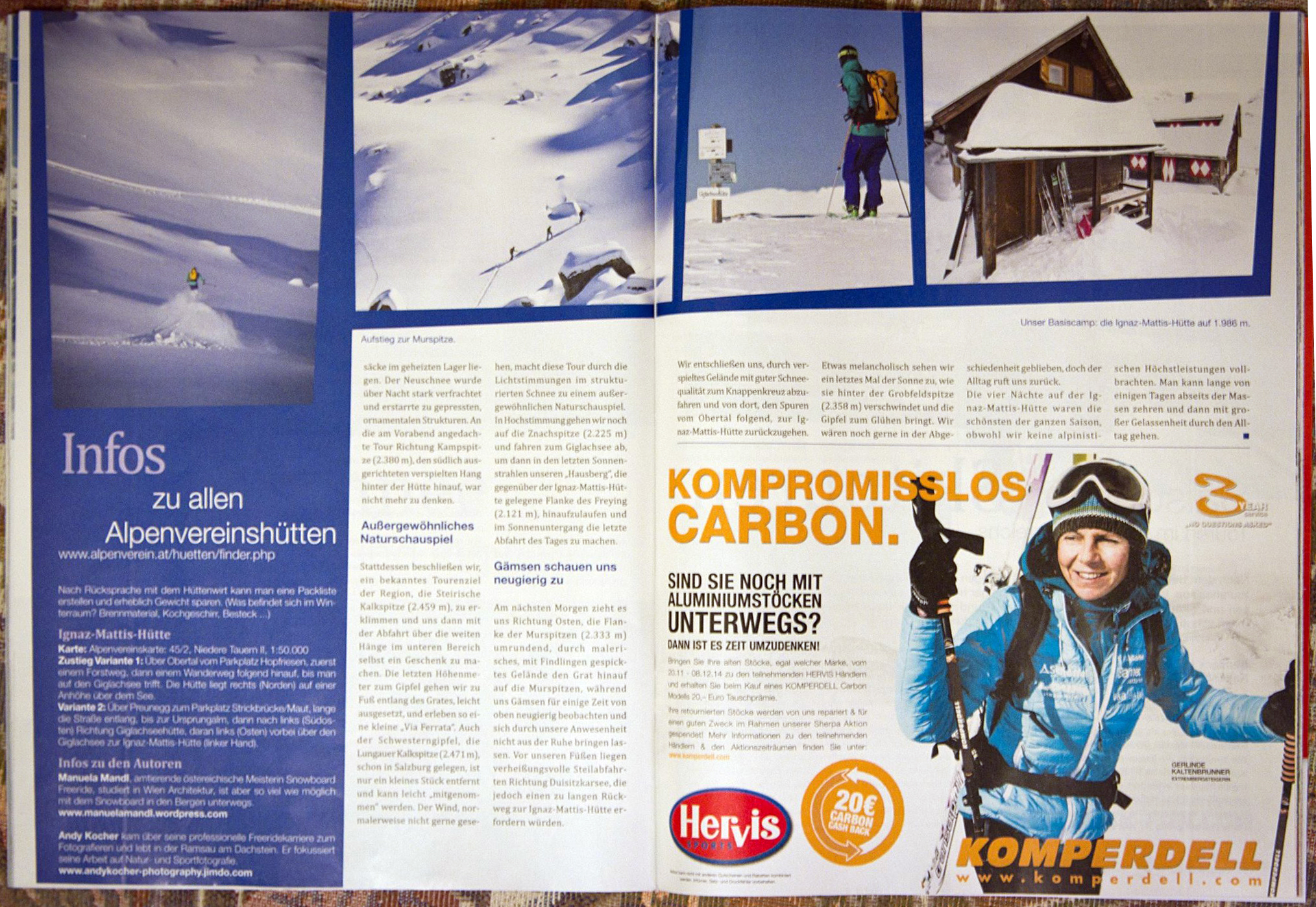 So there it is: Two Austrian Magazines are featuring our tale of a couple of days in a mountain hut close to home in November, which is briefly described on this blog as well, Andy Kocher worked his ass off as Photographer, some additional shots were taken by Saul Ferguson, who is also featured as a rider, whereas the men with the beard, loved by the camera, is called Georg and is a good friend of ours.
