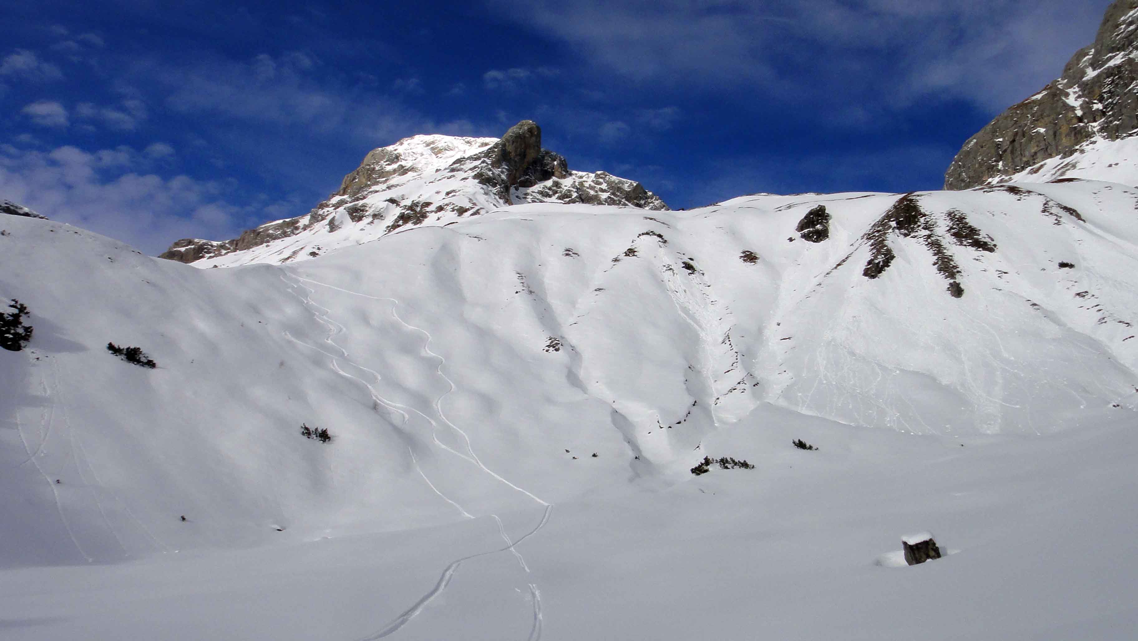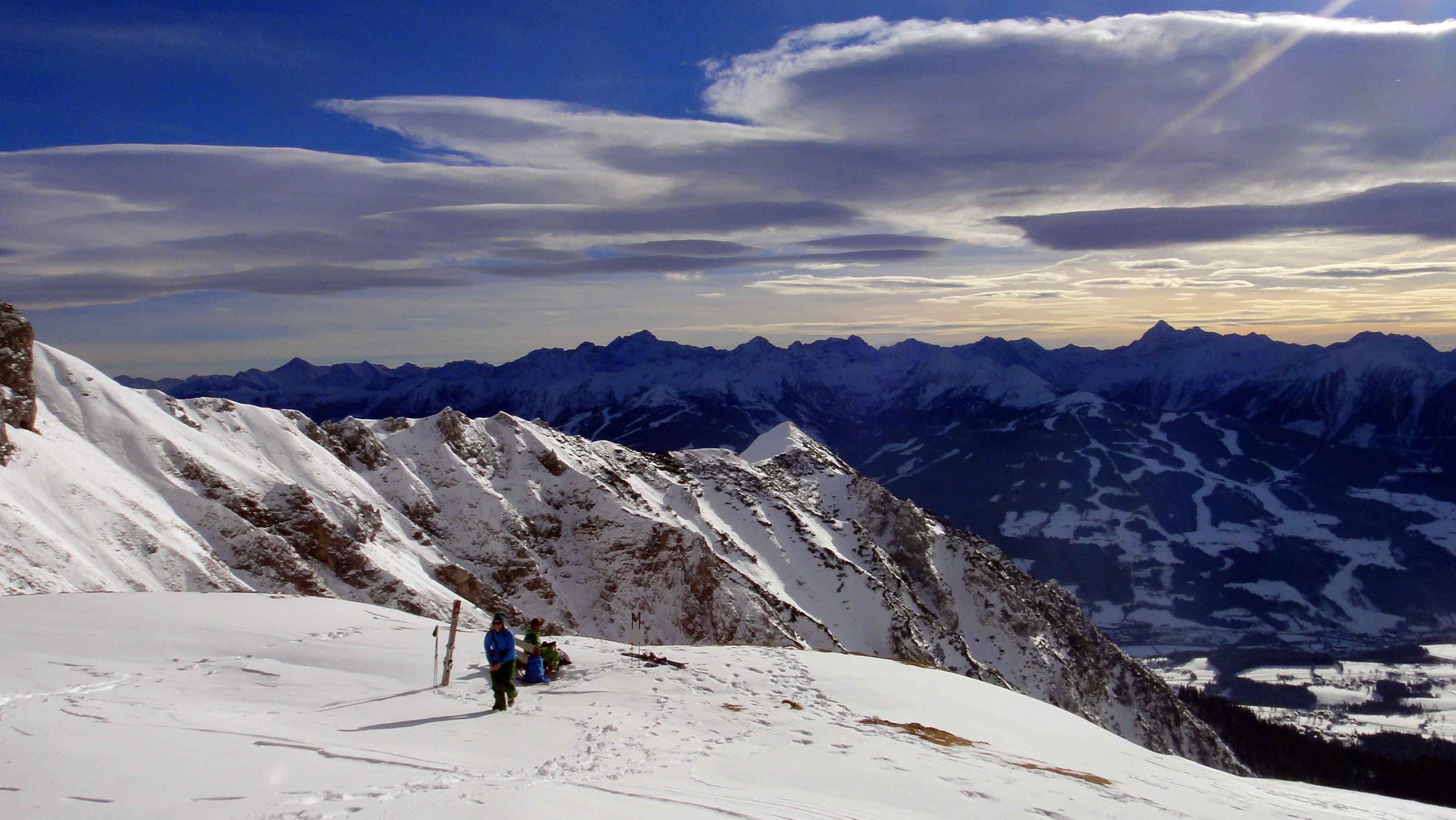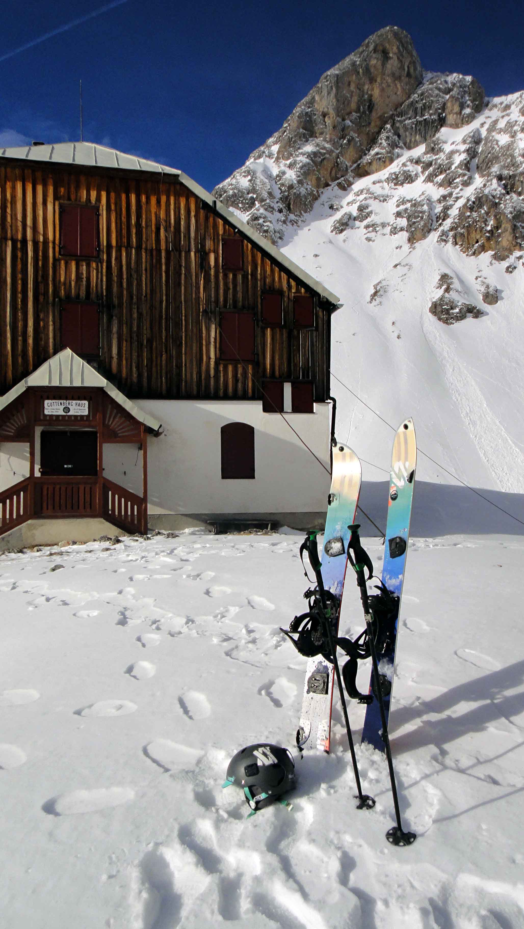 Because of a southern stream all the beautiful Powder which we got around New Year turned to rather wet snow. That was a good chance to check out some future lines and work on my condition. Together with Andy and Eva I made a small tour on Dachstein.