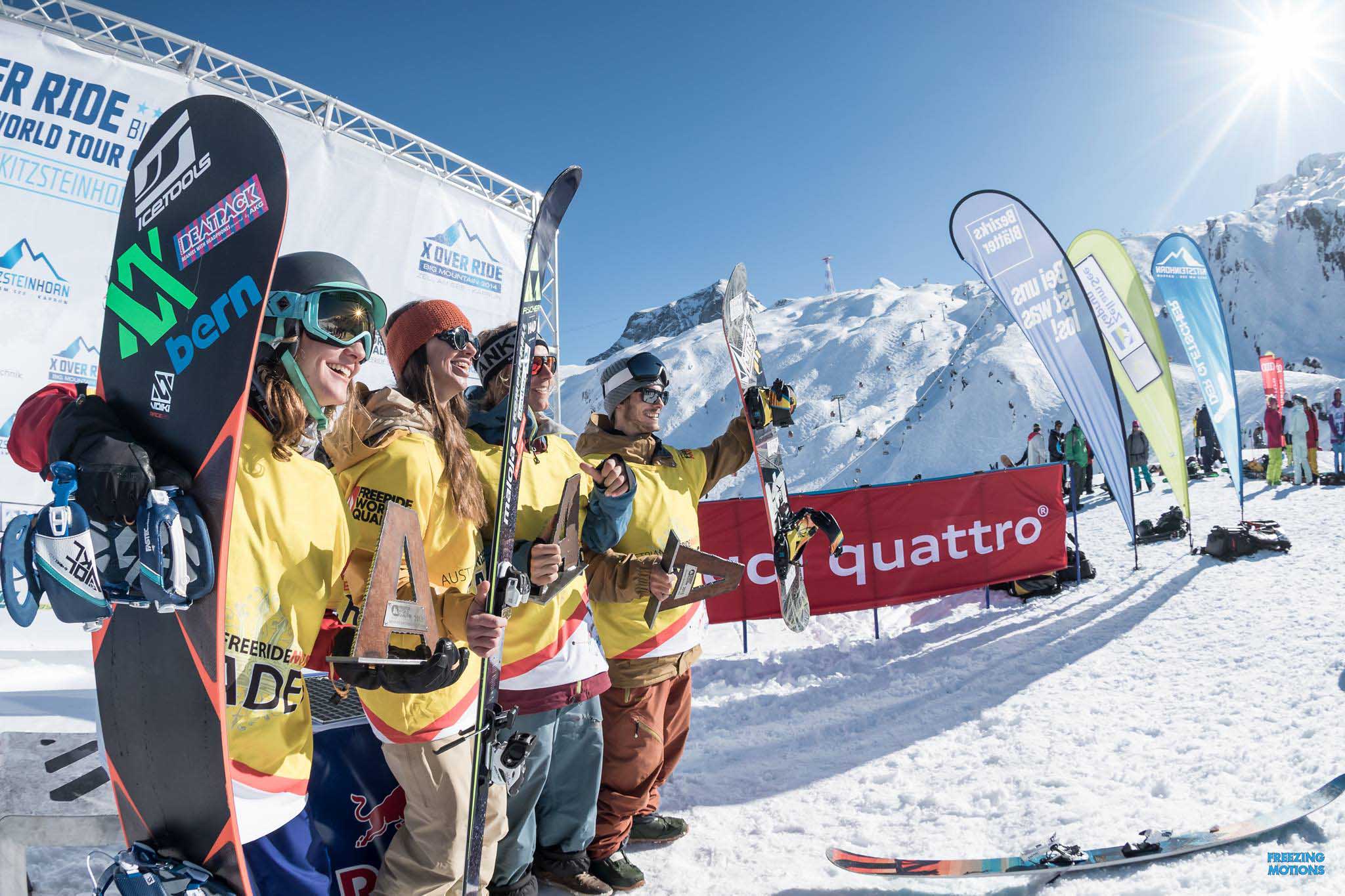 Austrian Freeride Masters – or the ‘A-Team’ Julian “Theking” Zenzmaier(Ski), me, Jakoba Kriechmayer(ski), Christoph Feurstein(Snowboard) photo credit: X-Over ride, mia*Maria Knoll