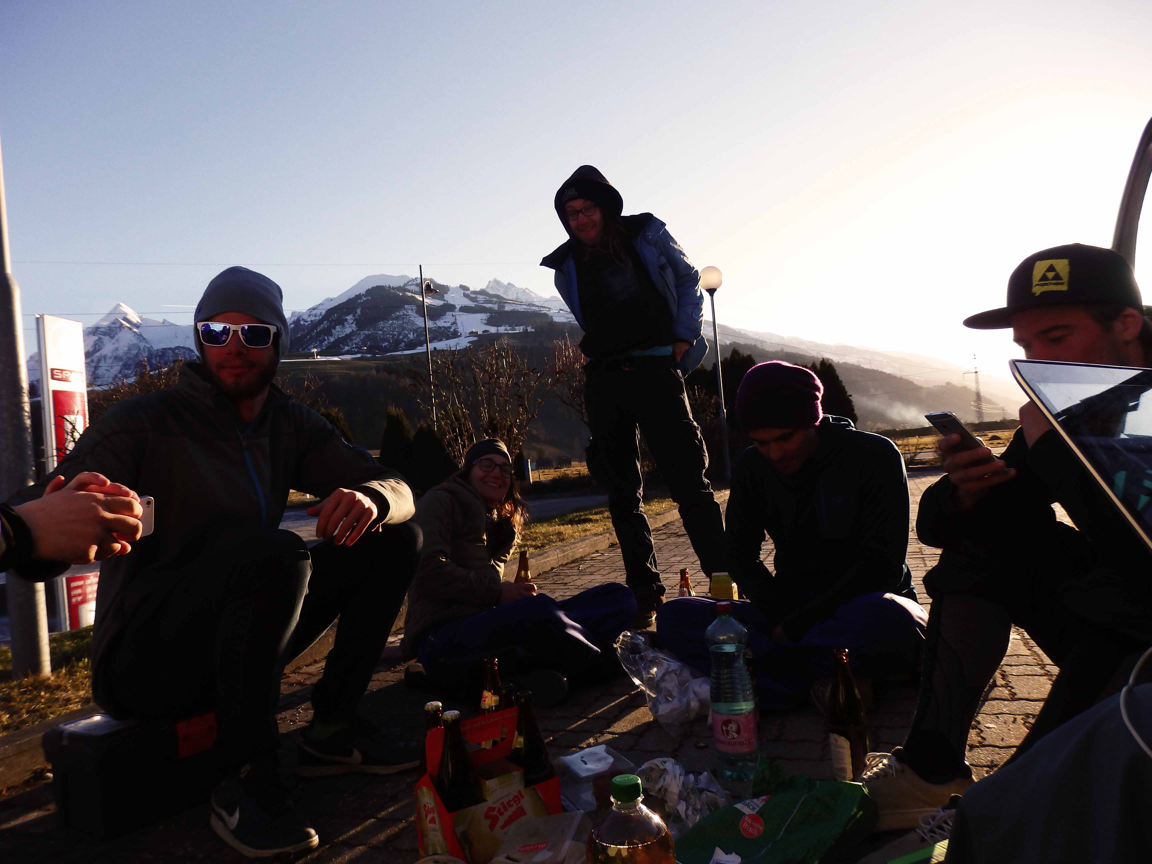 Next day to get over the hangover we went skiing in the slush and a friend tried snowboarding the first time in his life, while I was ‘teaching’. Very talented, definitely a worthy man for the leader trikot.